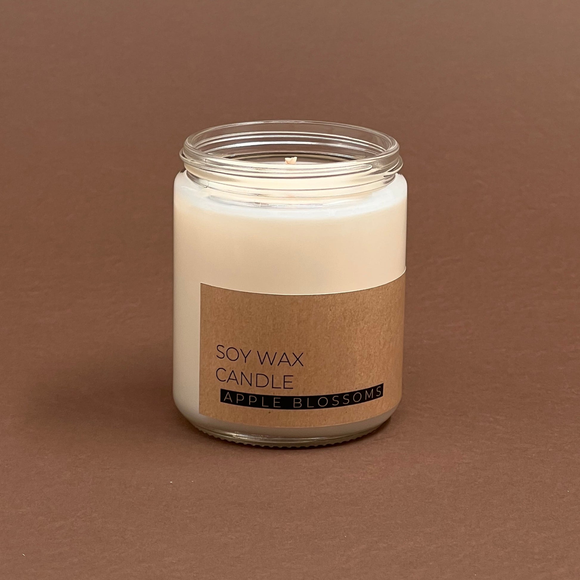 Sojas vasks, ābeļziedu aromāts, kokvilnas dakts, ābeļziedi.